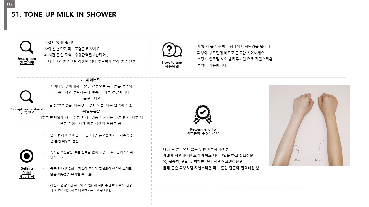 [HAIR/BODY CARE] [KOR] 51. TONE UP MILK IN SHOWER Proposal