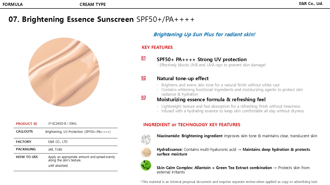 [SUN] 07. Brightening Essence Sunscreen (SPF50+PA++++) Proposal